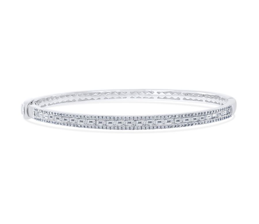 Exude timeless elegance with this 14K White Gold Bangle – ABN10266W, adorned with 14W BG DIA-1.49 carats of brilliant diamonds. Its sleek design, paired with the radiant sparkle of the diamonds, makes this piece a luxurious addition to any jewelry collection, perfect for adding sophistication to both everyday and special occasions.