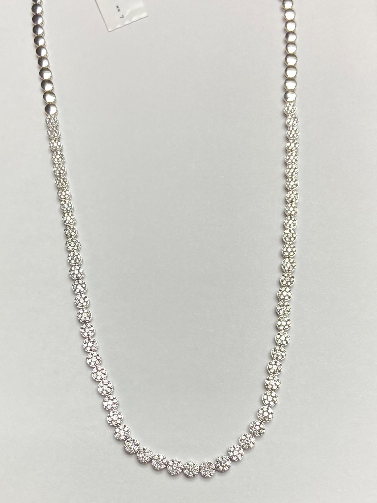 Illuminate your neckline with this elegant 14K White Gold Necklace – KN703095W, featuring 14W N DIA-5.46 carats of dazzling diamonds. The timeless design and radiant sparkle of the diamonds make this necklace a versatile and sophisticated piece, perfect for adding a touch of luxury to any outfit or occasion.