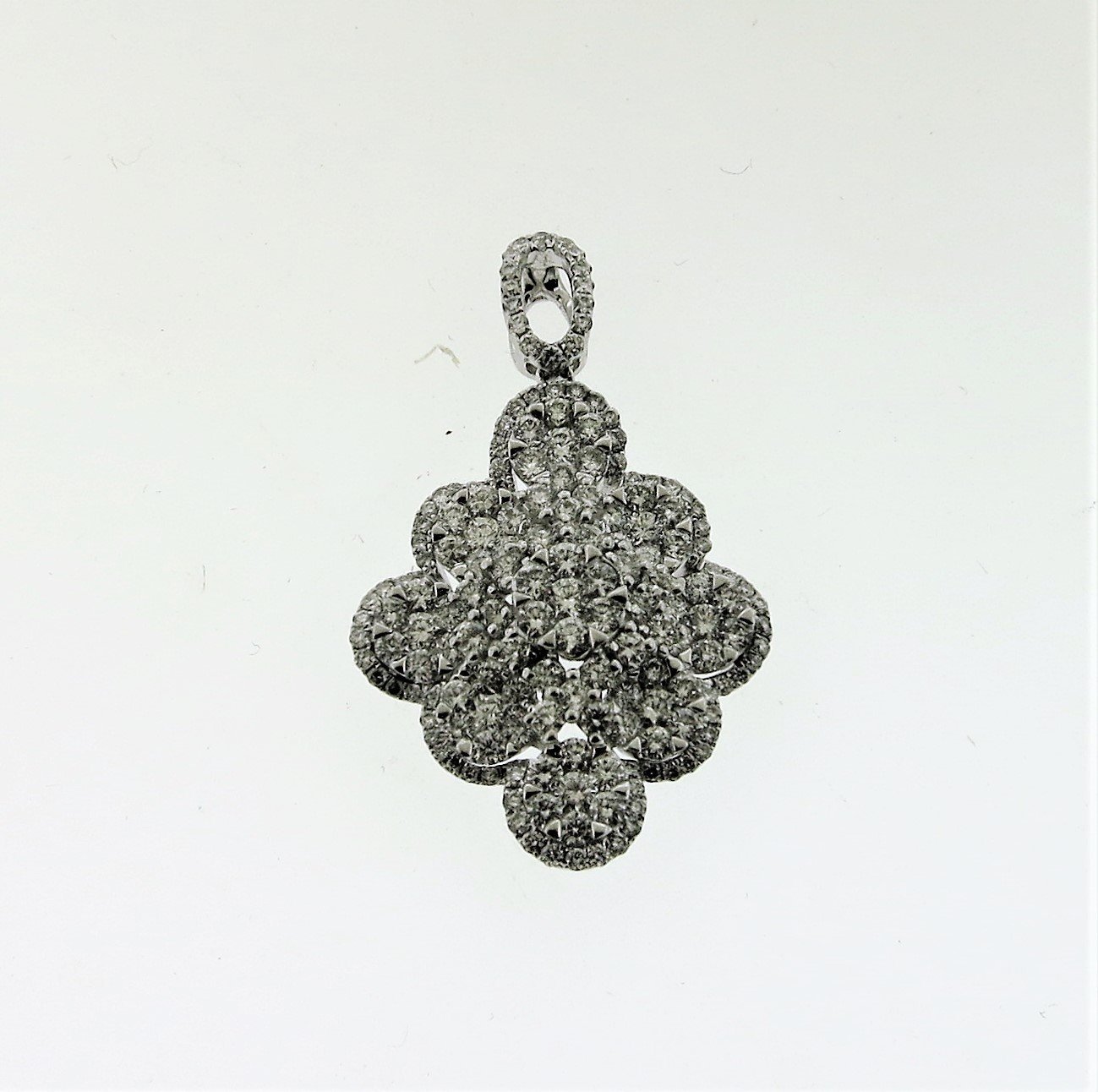 Enhance your jewelry collection with this elegant 18K White Gold Pendant – CO18KPW227, featuring 18K P DIA-2.27 carats of sparkling diamonds. The radiant diamonds catch the light beautifully, giving this classic design a touch of modern glamour, making it a versatile and stunning piece for any occasion.