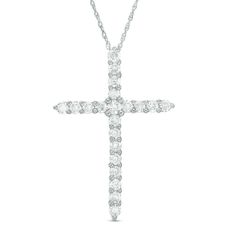 | Detail | \n \nA symbol of faith and elegance, this 14K White Gold Cross is adorned with 1.05 carats of sparkling diamonds. The radiant diamonds beautifully enhance the timeless piece that shines with both spiritual meaning and sophisticated charm. Perfect for everyday wear or special occasions. \n \n |